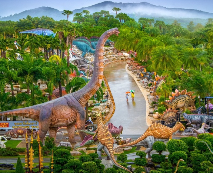 • Tham quan “Công Viên Khủng Long Nong Nooch” – Nong Nooch Dinosaur Valley Pattaya. Tại đây quý khách có dịp xem show biểu diễn của các chú voi vui nhộn. (Trường hợp không trùng giờ show sẽ bù qua cho quý khách ngồi xe điện dạo công viên). Tham quan khuôn viên công viên khủng long, vườn lan, xương rồng v.v…. cảnh đẹp như lạc vào thế giới rừng xanh.
